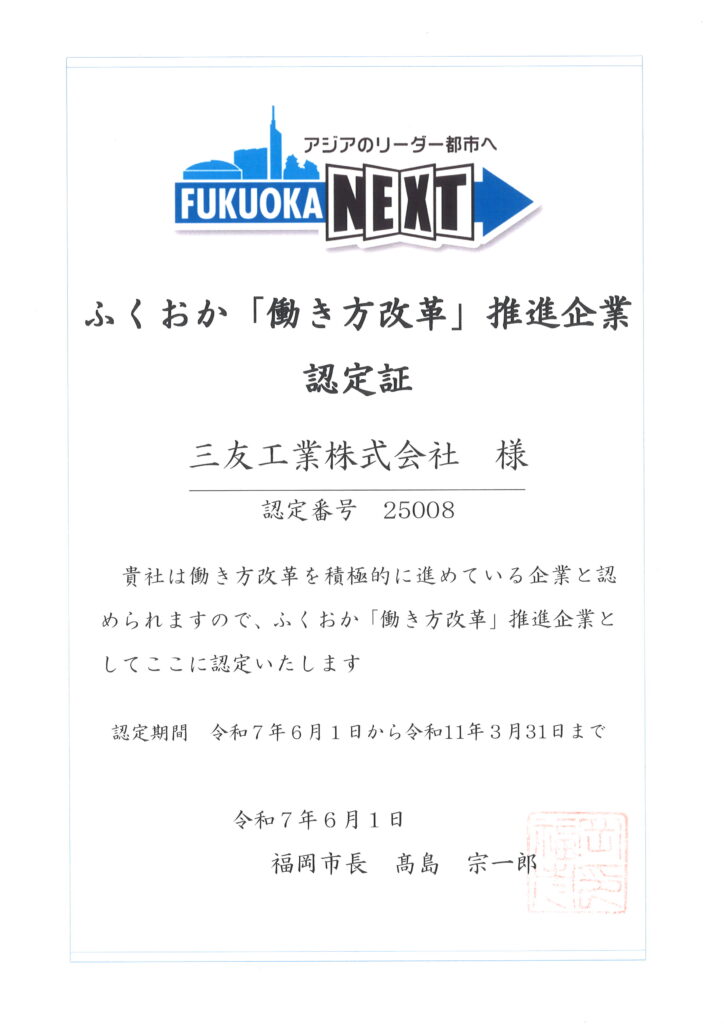 三友工業(株)はこれまで様々な取組において、公的な機関や元請様より高い評価を頂いております。